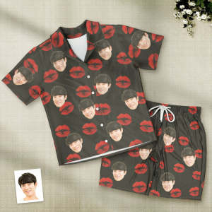 カスタムフォトパジャマ-写真入れ可能なオリジナル唇柄半袖パジャマ-夏の涼しいパジャマギフト