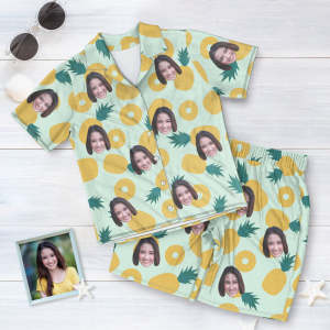カスタムフォトパジャマ-写真入れ可能なオリジナル半袖パジャマ-夏の涼しいパイナップル柄パジャマギフト