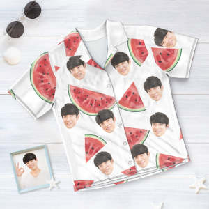 カスタムフォトパジャマ-写真入れ可能なオリジナル半袖パジャマ-夏の涼しいスイカ柄パジャマギフト