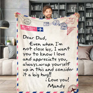 父の日ギフトカスタム名前ブランケット-レター-お父さんへのオリジナル名前入れ可能なブランケットエアメールレター毛布