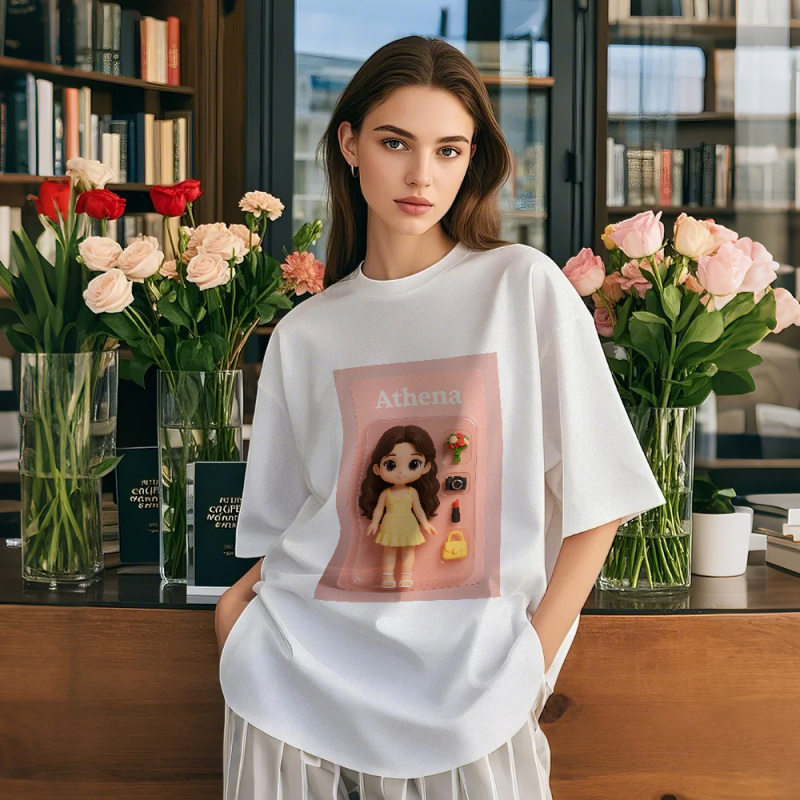 アップロード2Dミニフィギュアやアニメキャラクターの鮮明な写真をお送りください.あなたの個性的なスタイルを際立たせる,楽しくて個性的なTシャツに仕上げます.コスプレ,誕生日,あるいはただファンであることをアピールするなど,どんな場面でも,このTシャツは大胆で個性的なステートメントになります.