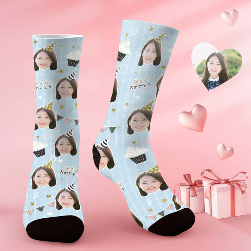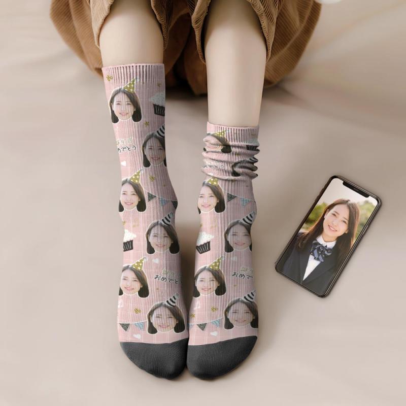 カスタムフェイスソックス-写真入り可能なオリジナル靴下-誕生日おめでとう カスタムフェイスソックス-写真入り可能なオリジナル靴下-誕生日おめでとう