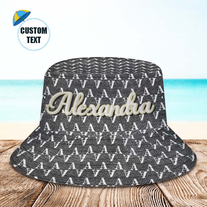 カスタムバケットハット-名入れ可能な男女兼用ブラック日よけ帽子プレゼント