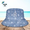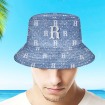 カスタムバケットハット-名入れ可能な男女兼用ブルー格子状の模様の日よけ帽子プレゼント