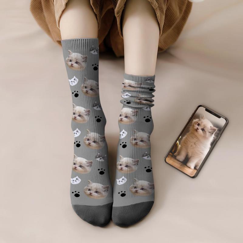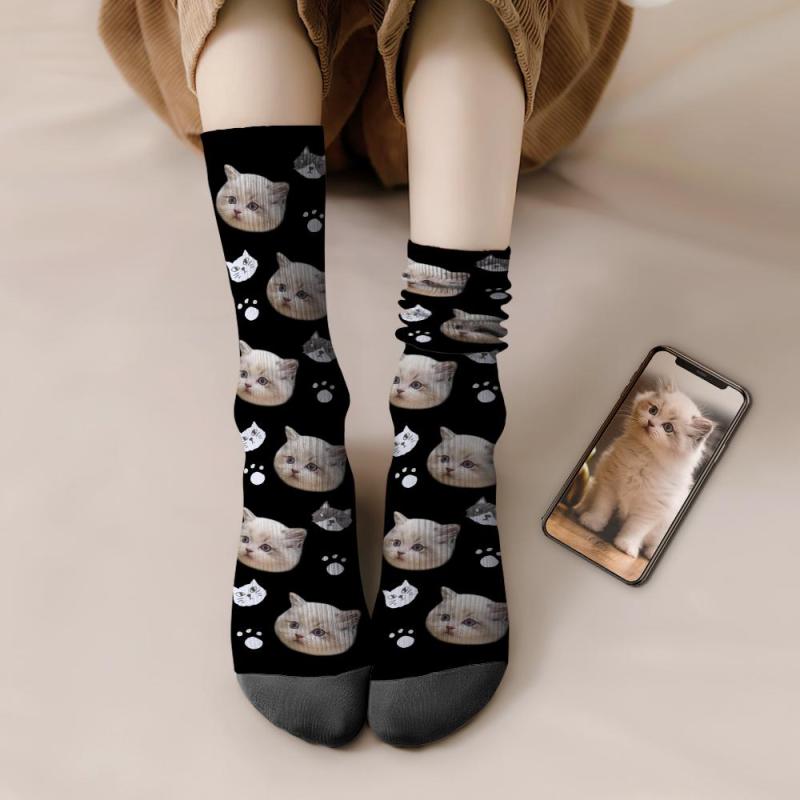 カスタムフェイスソックス-写真入り可能なオリジナル靴下-可愛い猫柄 カスタムフェイスソックス-写真入り可能なオリジナル靴下-可愛い猫柄
