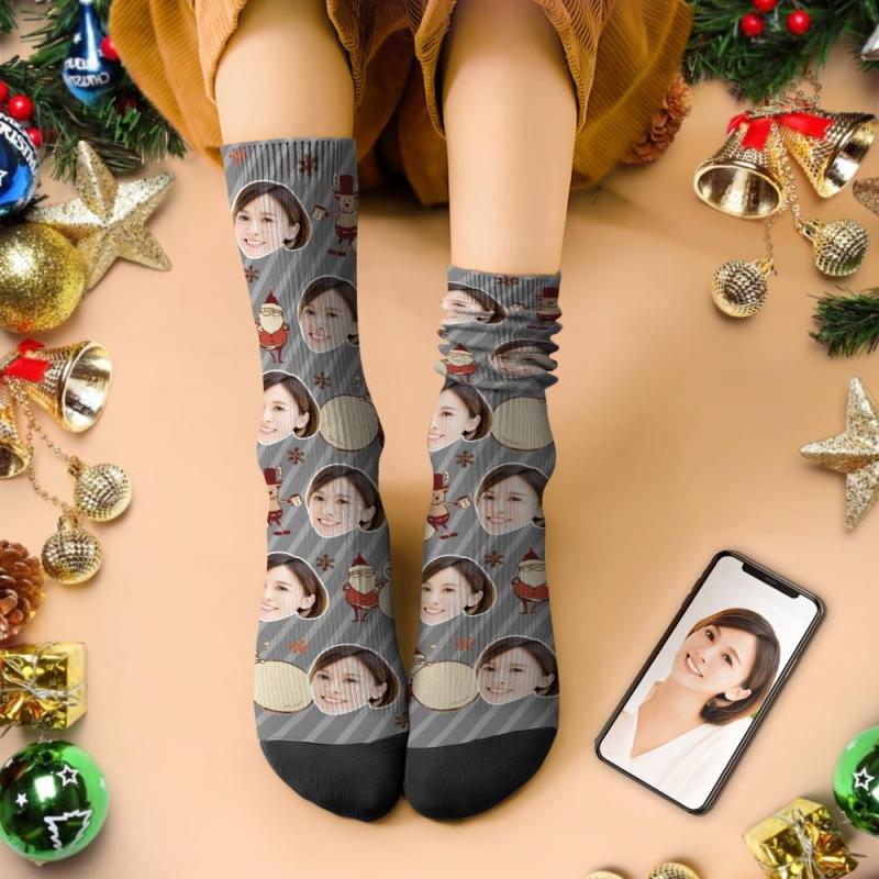 カスタムフェイスソックス-写真入り可能なオリジナルクリスマス靴下-トナカイとサンタ
