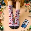カスタムフェイスソックス-写真入り可能なオリジナルクリスマス靴下-雪とサンタ
