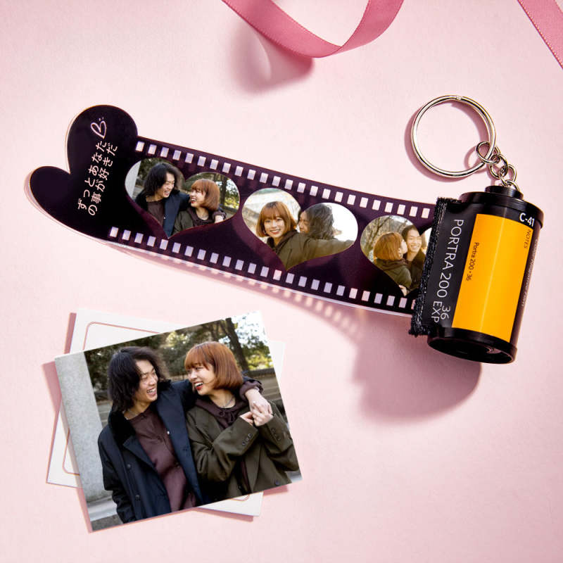 カスタム写真フィルムキーホルダー-ハート形の写真入れ可能なカメラロールキーホルダープレゼント