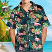 カスタムフォトハワイTシャツ-写真入り可能なオリジナルTシャツフラミンゴの花と葉