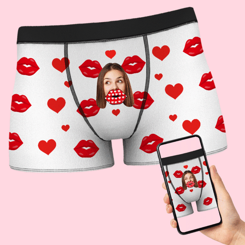 カスタムフェイスAR男性用ボクサー-写真入れ可能な面白い唇柄のボクサーパンツ彼氏へのバレンタインデーギフト