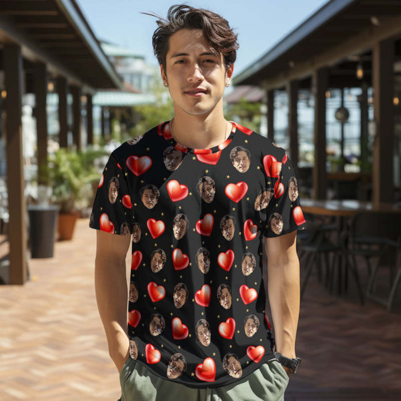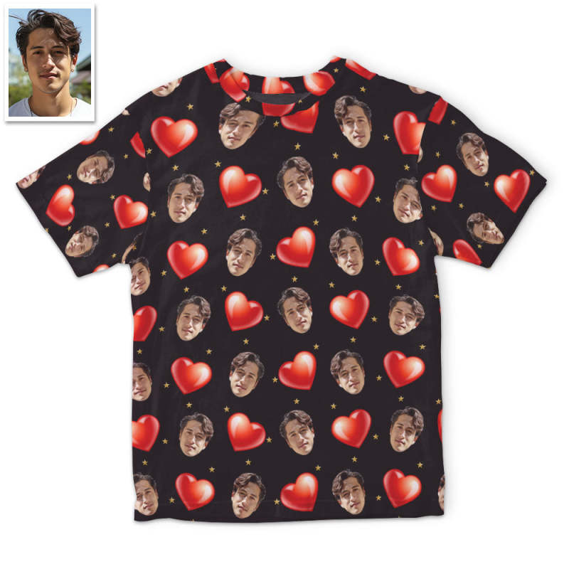 カスタムフォトTシャツ-写真入り可能な男女兼用オリジナルTシャツプレゼント-ハートだらけ柄