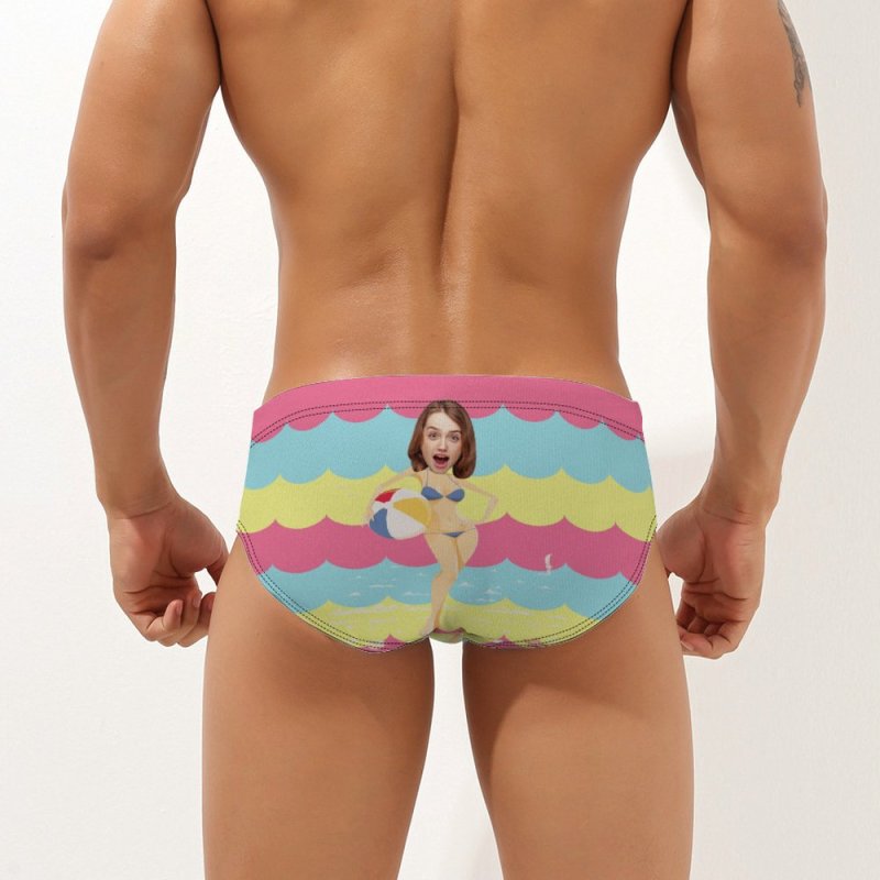 カスタムフェイス男性用水泳パンツ - 顔の写真入れ可能な三角形の水着用パンツ - ビーチサーフィン