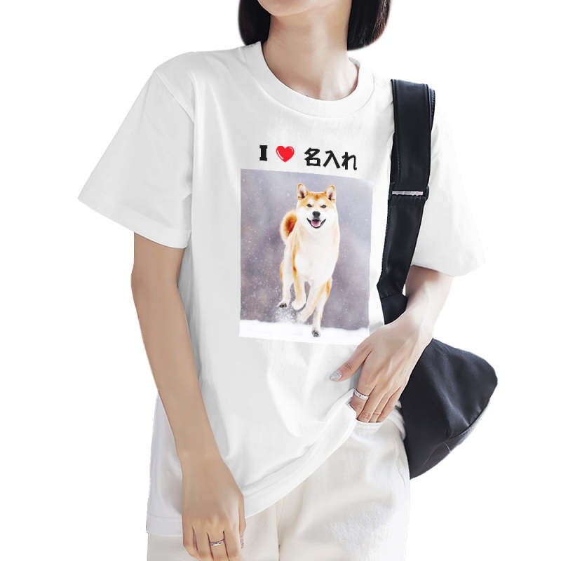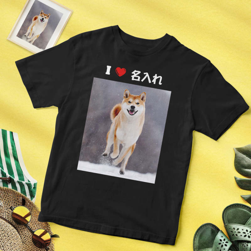 カスタムフォトTシャツ - 写真と名前入れ可能なペット写真T-SHIRTプレゼントI♥○○