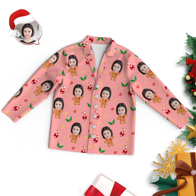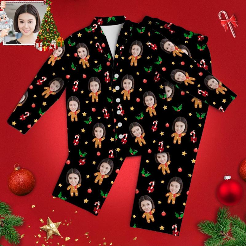 カスタムフォトパジャマ-写真入り可能なオリジナルクリスマスパジャマ-ジンジャーブレッド人