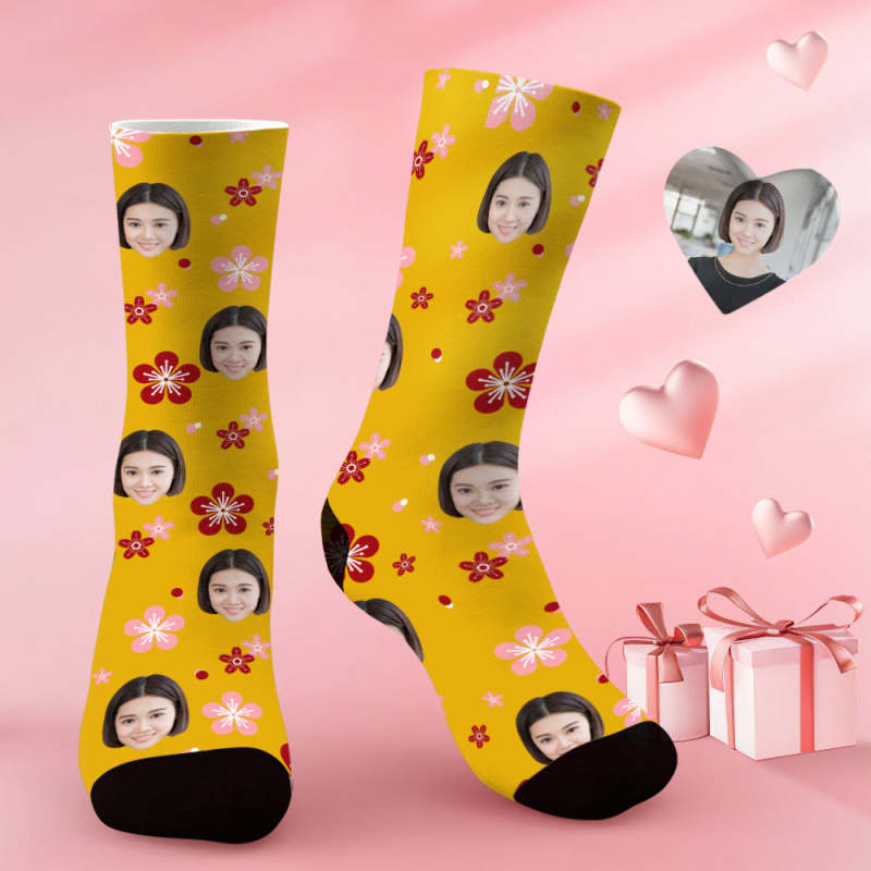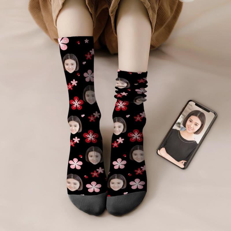 カスタムフェイスソックス-写真入り可能なオリジナル靴下-可愛い桜の花柄バレンタインギフト