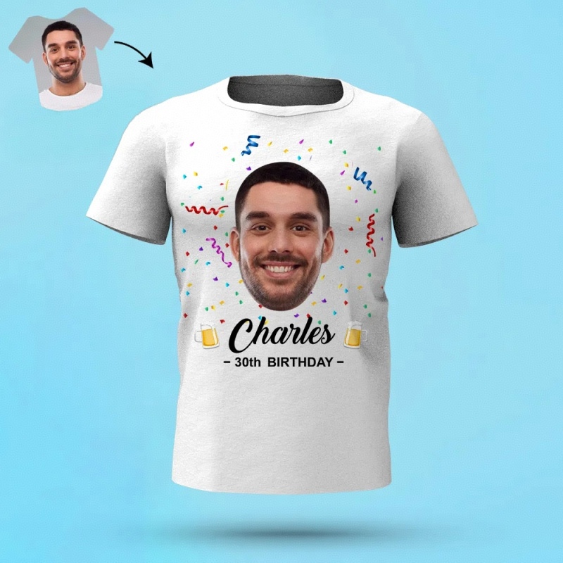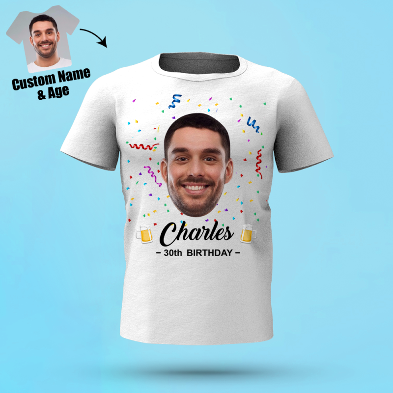 カスタムフェイスTシャツ-お誕生日おめでとうの名前と年齢入れ可能なオリジナルシャツギフト