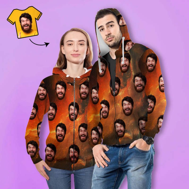カスタム顔ユニセックスパーカー-カジュアルプリント写真チャックパーカー男性女性用-宇宙。 家族、恋人、友人、またはあなた自身へのユニークなギフト。