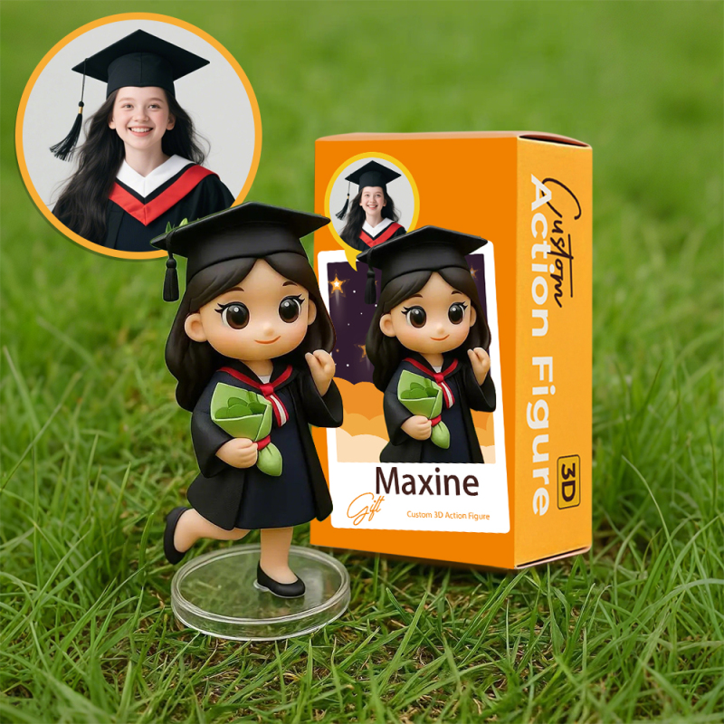 写真からカスタマイズした卒業式3dフィギュアミニ卒業式人形(キャップ​​とガウン付き)