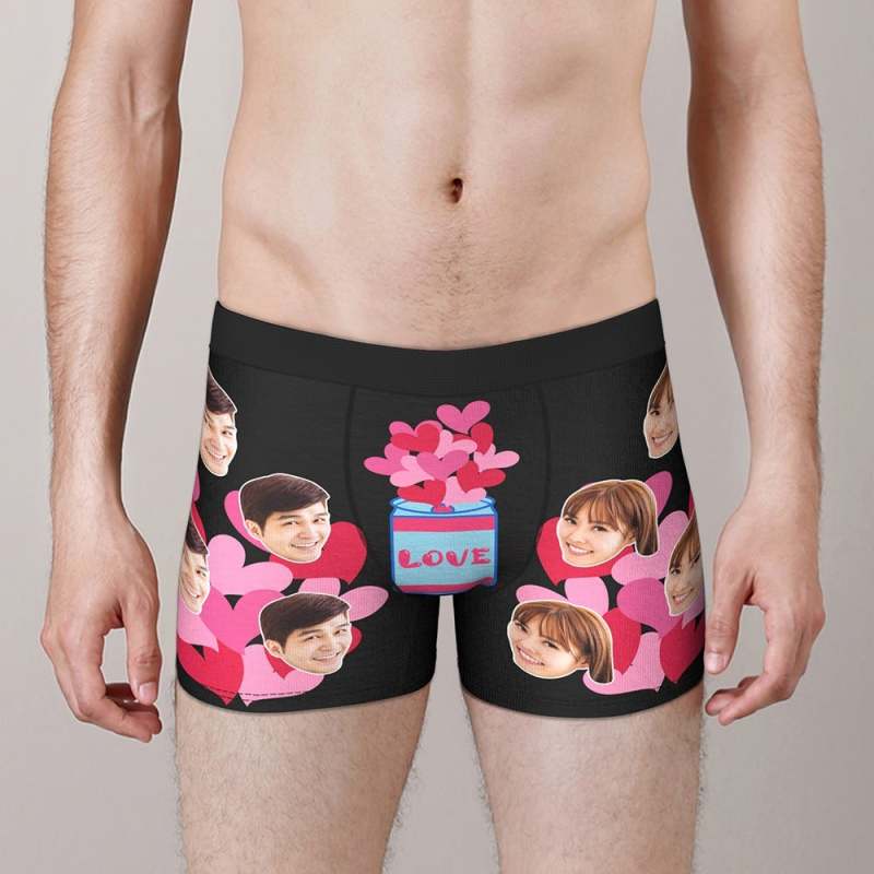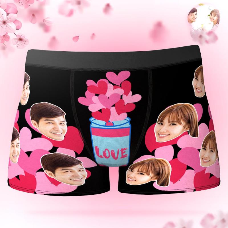 カスタムフォトボクサーパンツ-写真とテキスト入り可能なハート缶の下着彼氏や旦那へのバレンタインギフト