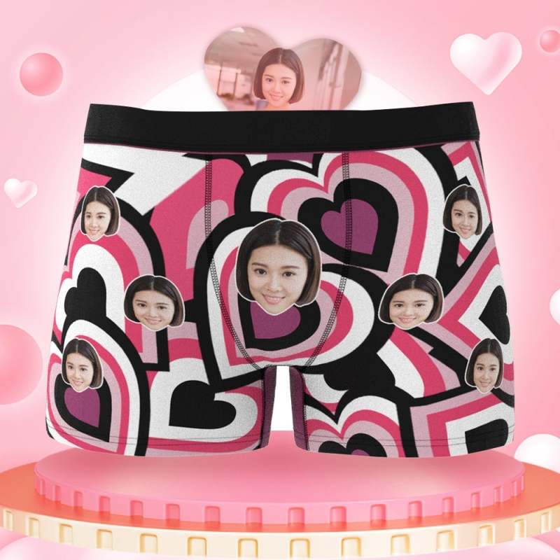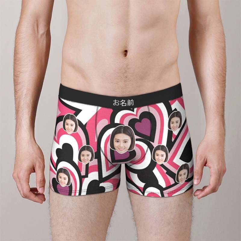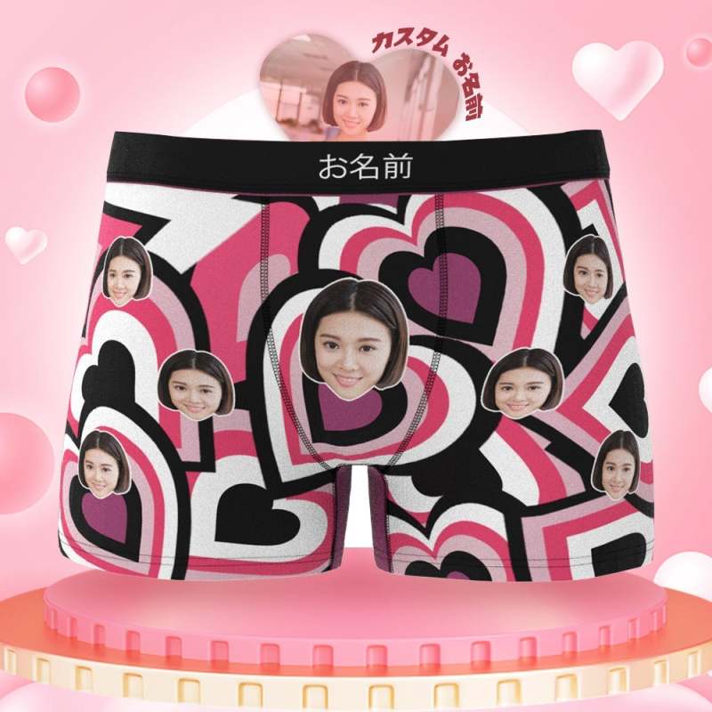 カスタムフォトボクサーパンツ-写真とテキスト入り可能なマルチプルハート柄のオリジナル下着バレンタインプレゼント