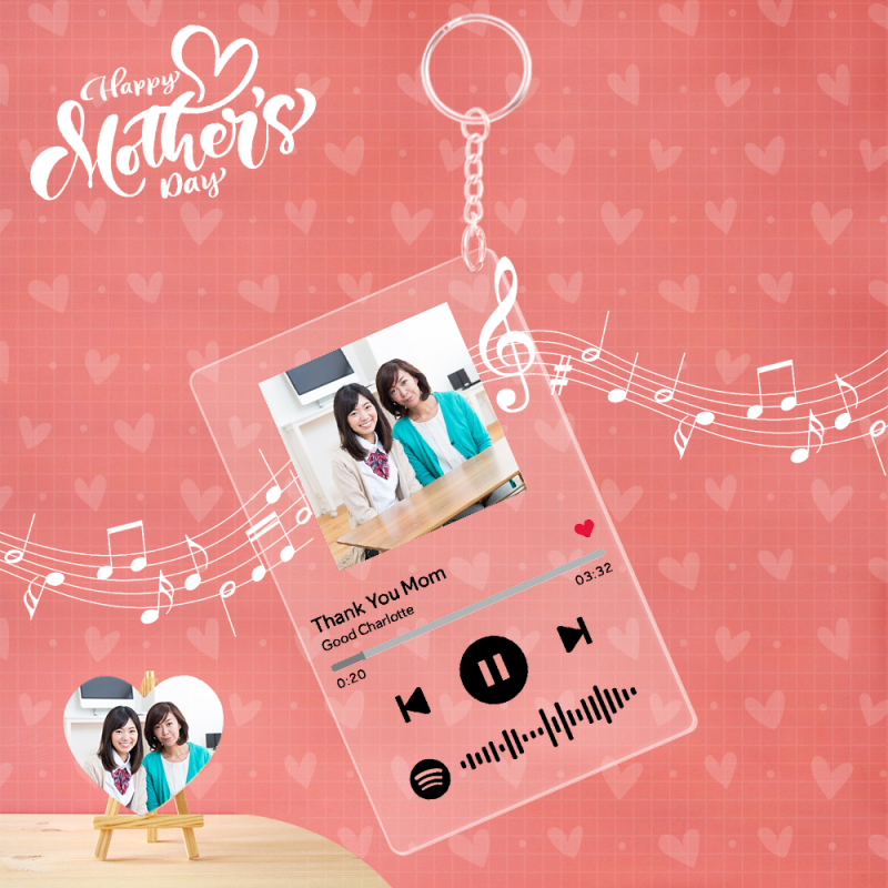 ミュージックガラスカスタムスキャン可能キーホルダーミュージックコードミュージックプラークキーリング-母の日ギフト
