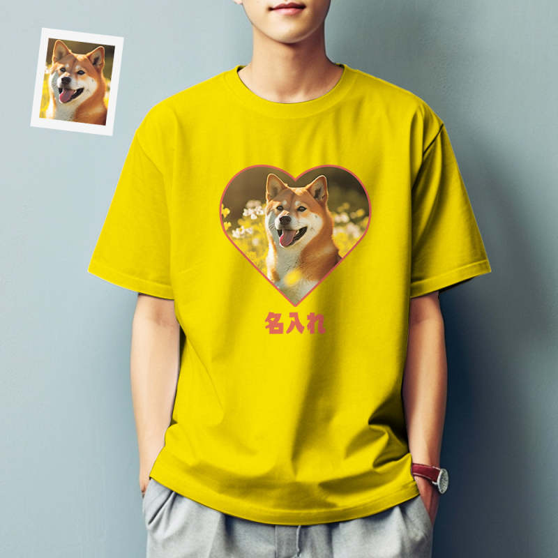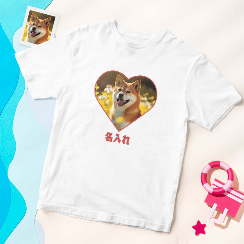 カスタム男女兼用フォトTシャツ - ペット写真や名入れ可能なハート形写真T-SHIRTプレゼント