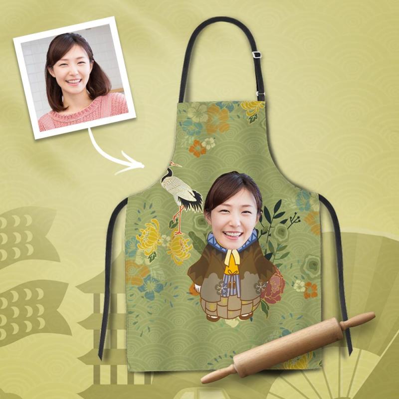 カスタムフォトエプロン-写真入れ可能なキッチン首掛け式エプロンギフト-和柄着物 カスタムフォトエプロン-写真入れ可能なキッチン首掛け式エプロンギフト-和柄着物