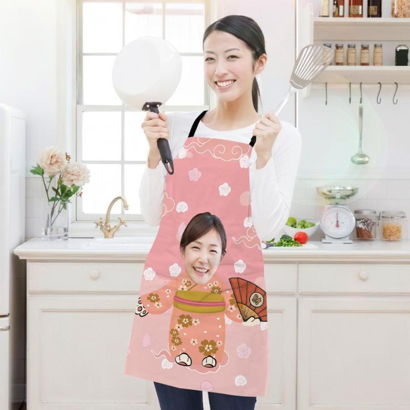 カスタムフォトエプロン-写真入れ可能なキッチン首掛け式エプロンギフト-和柄ピンクの着物