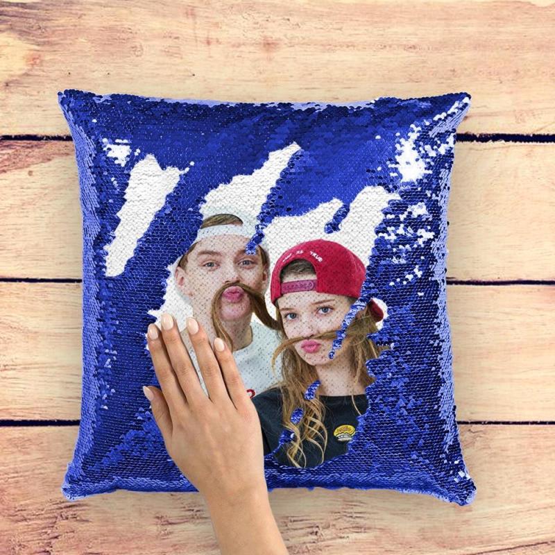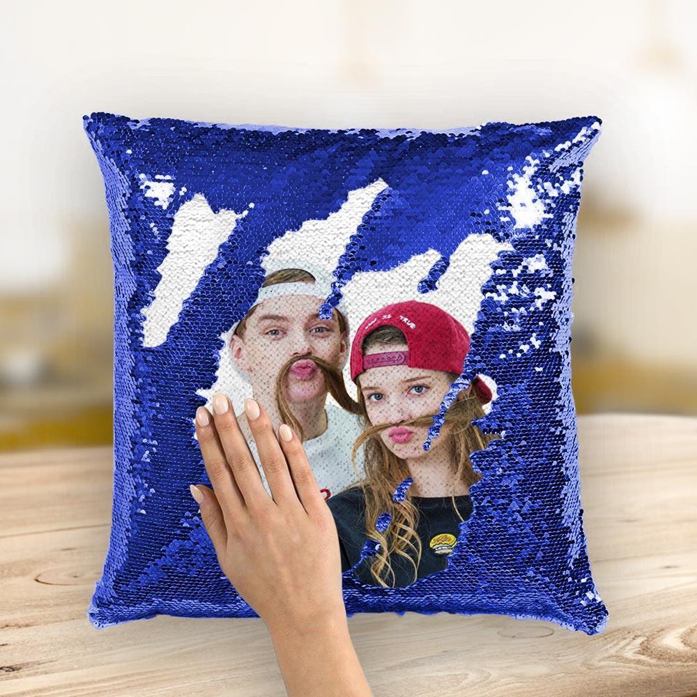 カスタム写真マジックスパンコールクッション - ブルー - 15.75インチ x15.75インチ