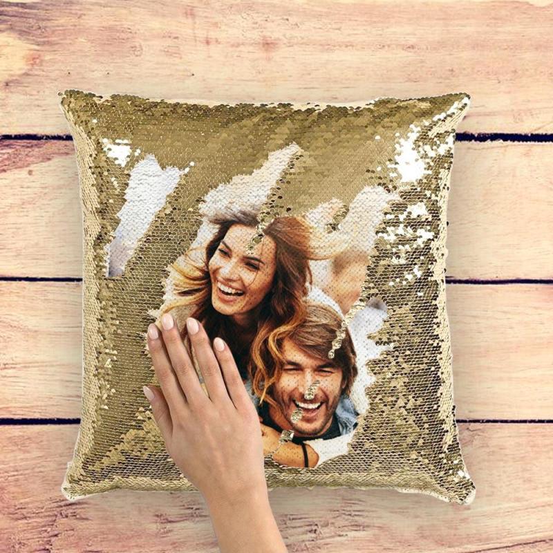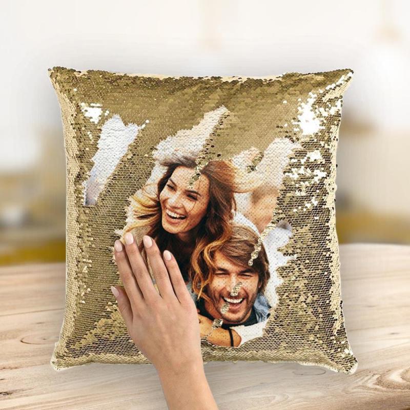 カスタム写真マジックスパンコールクッション - ゴールデン - 15.75インチ x15.75インチ