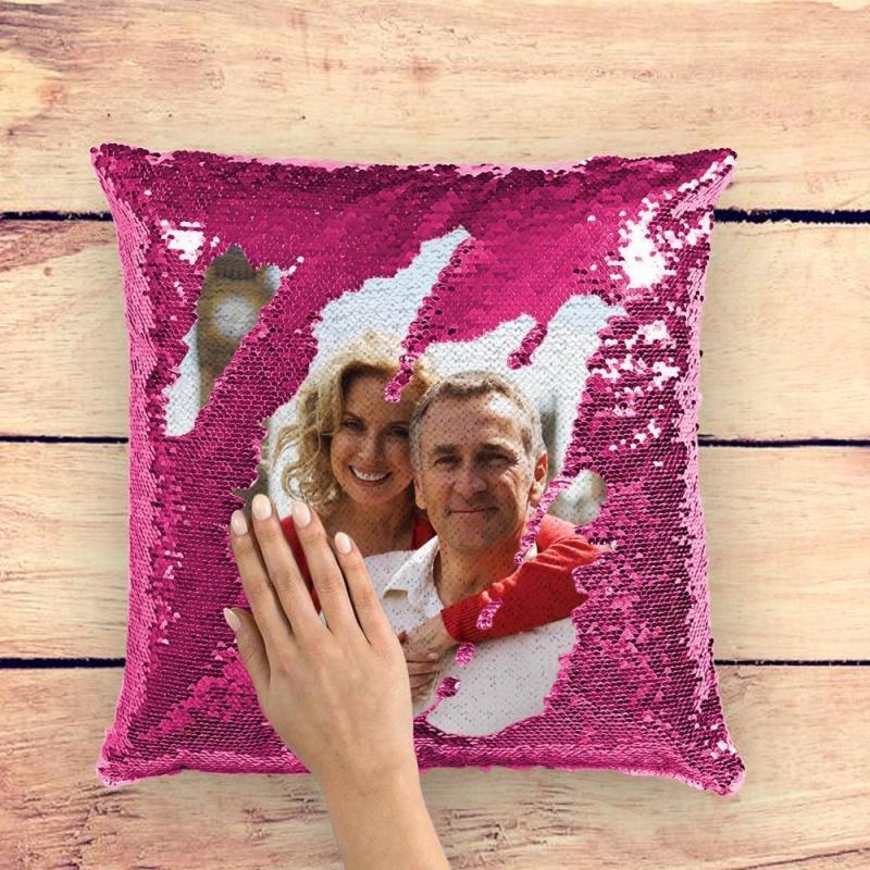 カスタム写真マジックスパンコールクッション - ピンク - 15.75インチ x15.75インチ