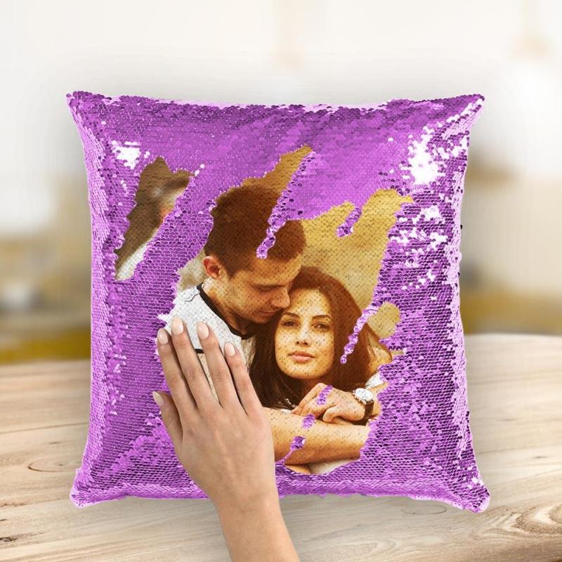 カスタム写真マジックスパンコールクッション -パープル - 15.75インチ x15.75インチ