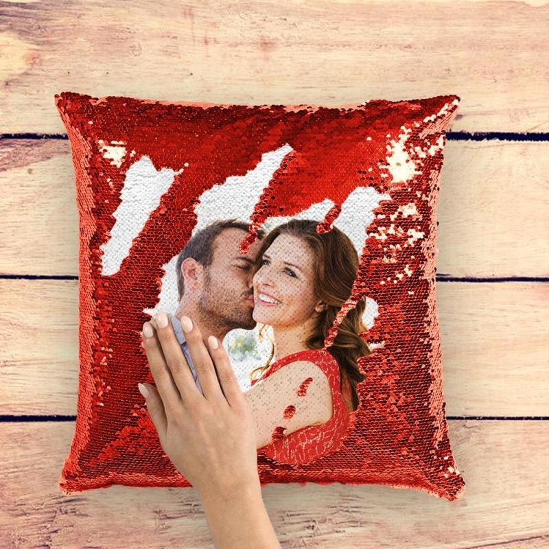 カスタム写真マジックスパンコールクッション – 黒 - 15.75インチ x15.75インチ