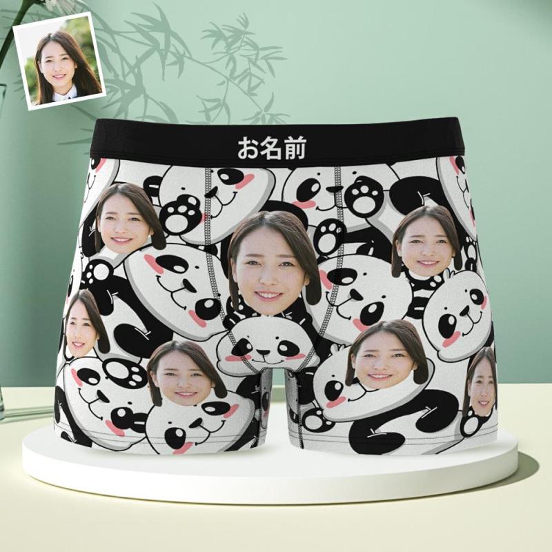 カスタムフォトボクサーパンツ-写真とテキスト入れ可能な超可愛いパンダの下着彼氏や旦那へのギフト