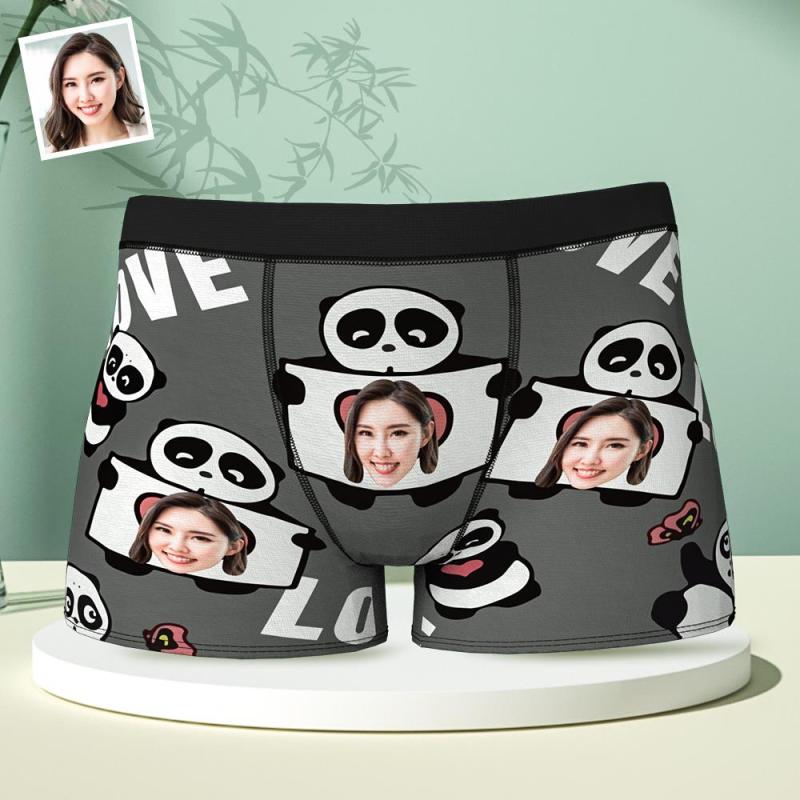 カスタムフォトボクサーパンツ-写真とテキスト入れ可能なパンダとハート柄の下着彼氏や旦那へのギフト