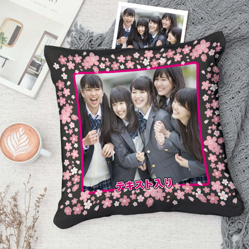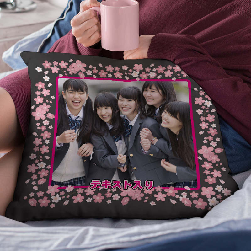 カスタム写真クッション-写真入れ名入れ可能な桜柄の抱き枕卒業記念ギフト