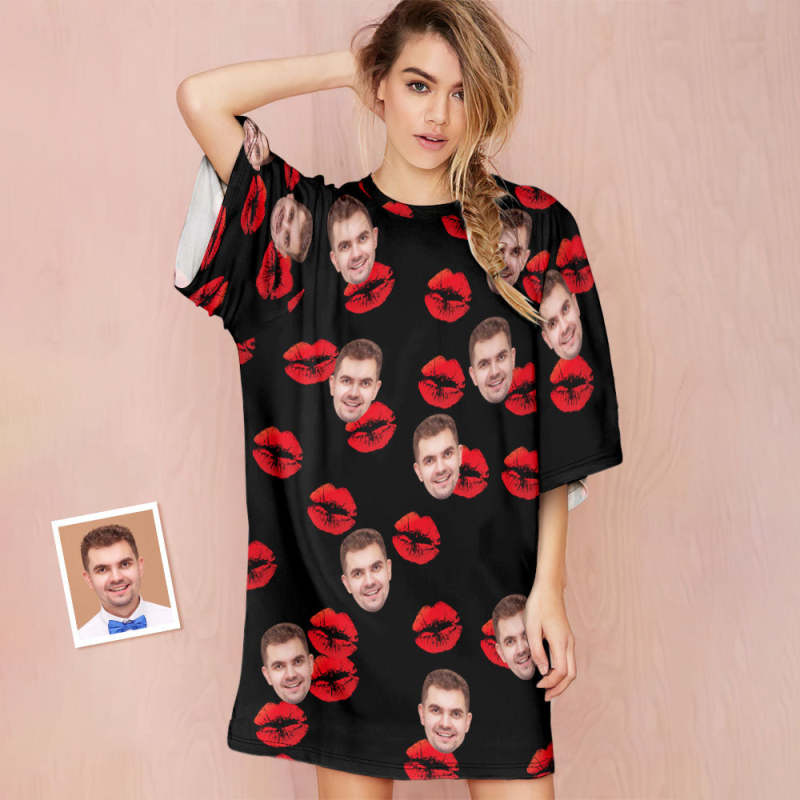 カスタム写真部屋着 - 写真入れ可能なパジャマ-オーダーメイドの女性用超特大パジャマ面しろいプレゼント唇柄