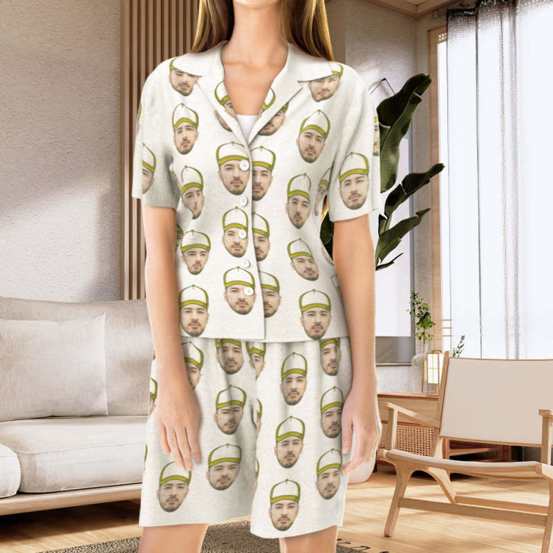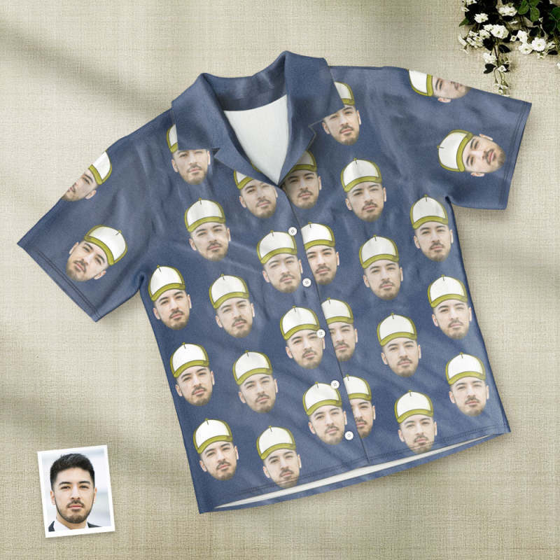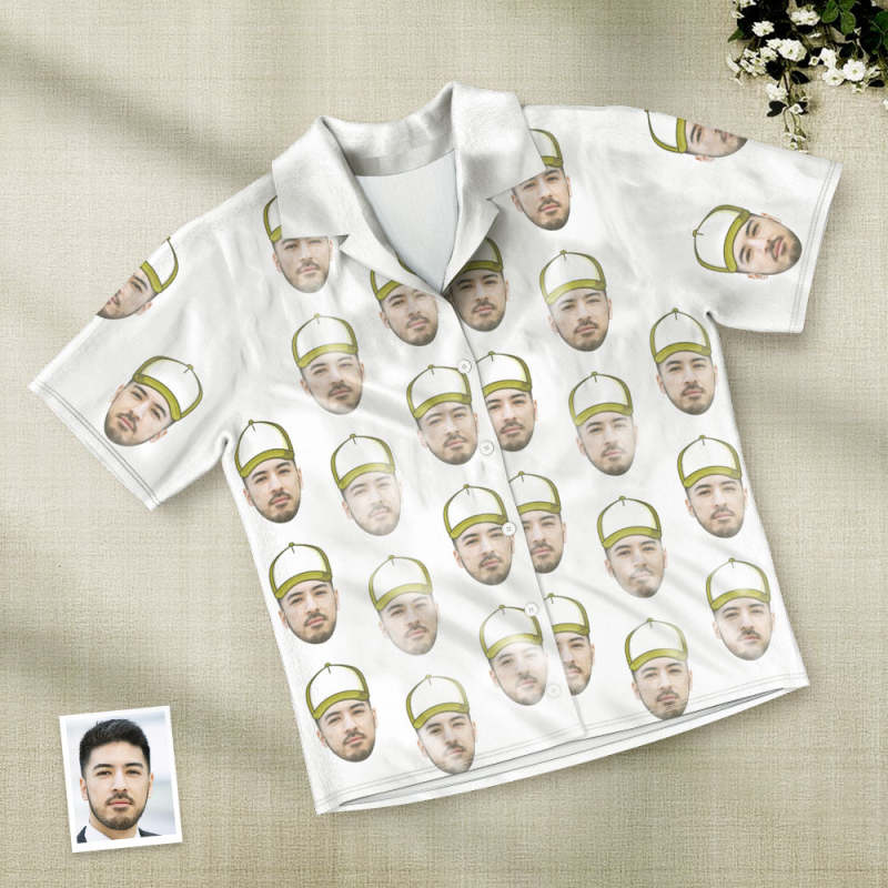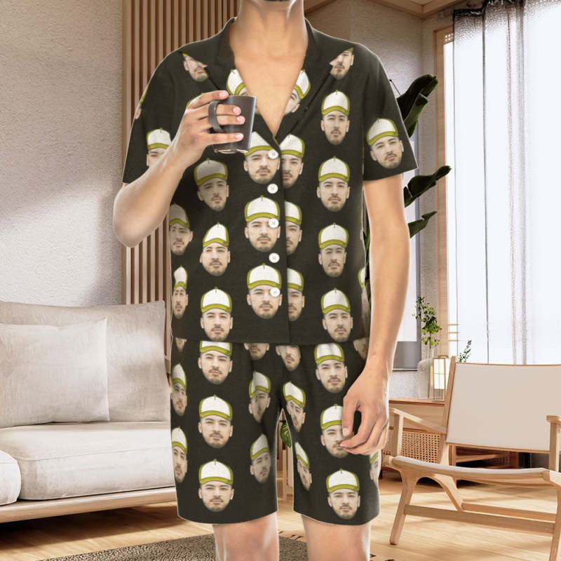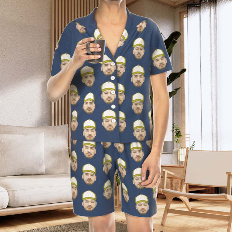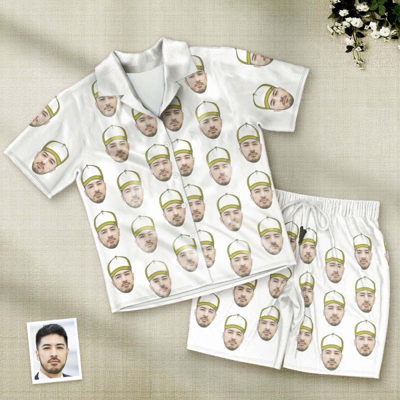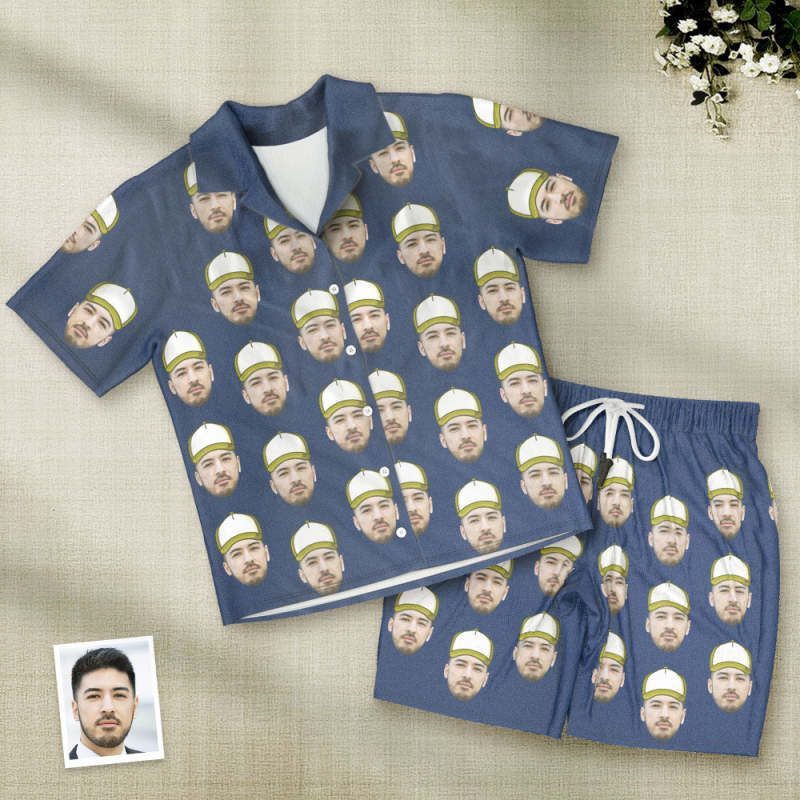 カスタムフォトパジャマ-写真入れ可能なオリジナル野球ハット柄半袖パジャマ-夏の涼しいパジャマギフト