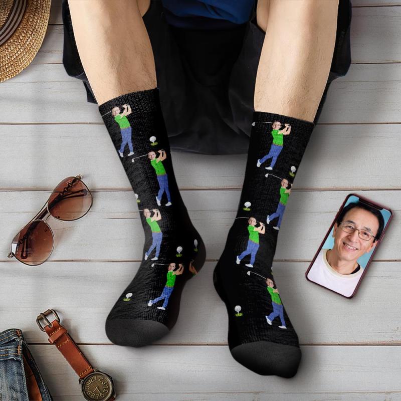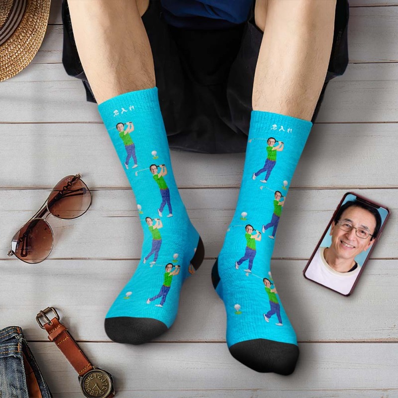 カスタムフォトソックス-写真や名入れ可能なゴルフ選手柄のオリジナル靴下父の日プレゼント