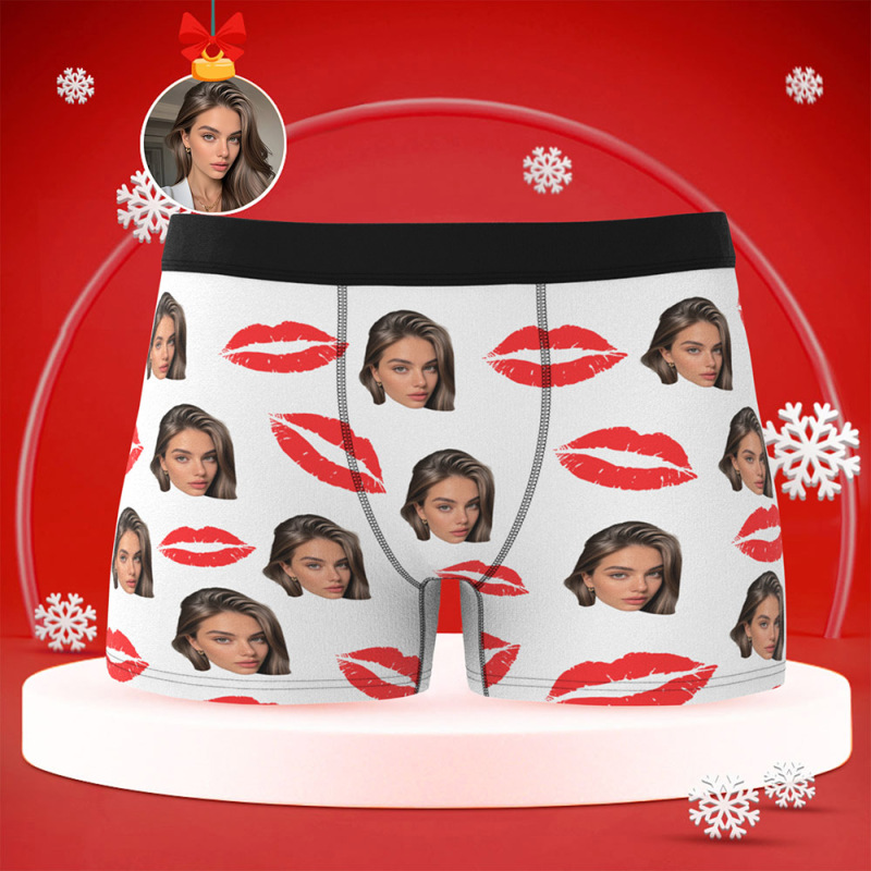 赤い唇のカスタムフォト下着,カップル向けのパーソナライズされたセクシーなギフト,カスタムフォトクリスマスパンティー