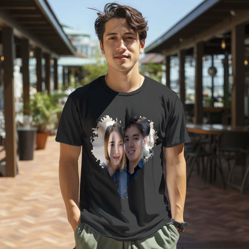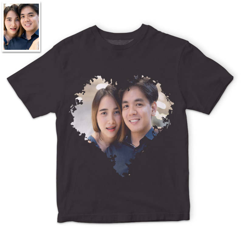 カスタム男女兼用フォトTシャツ - カップルの写真入れ可能なハート形写真T-SHIRTプレゼント