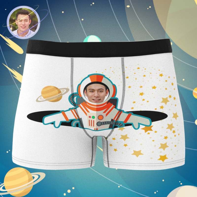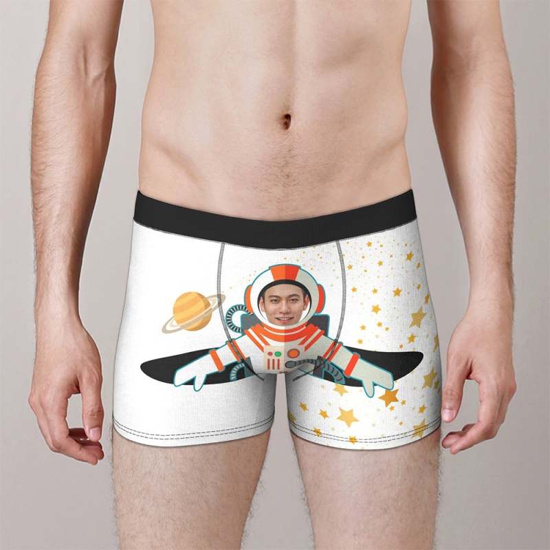 カスタムフォトボクサーパンツ-写真とテキスト入り可能な宇宙飛行士柄のオリジナル下着