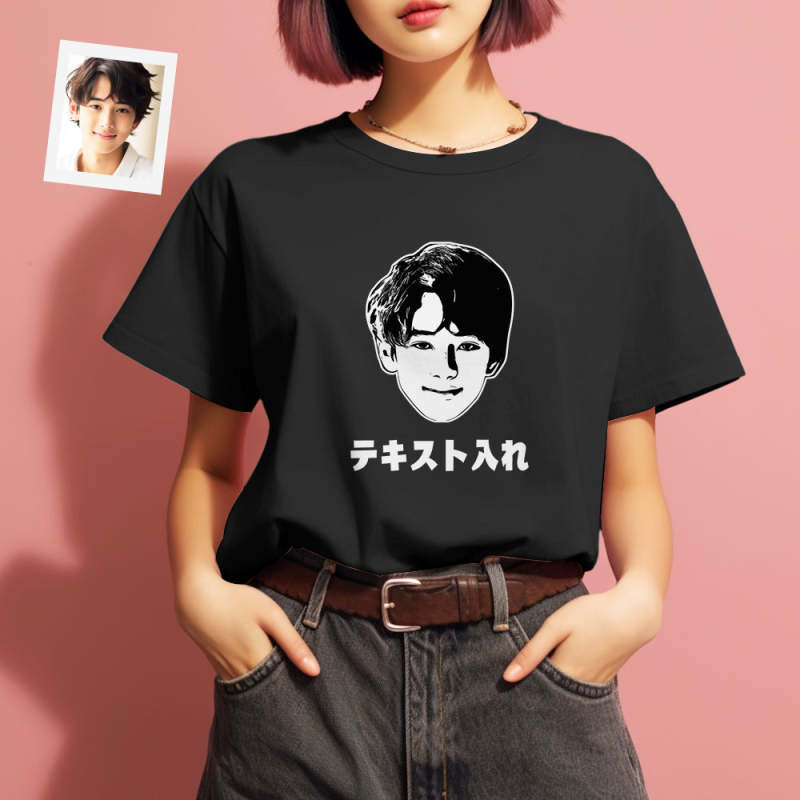 カスタム男女兼用フォトTシャツ - 写真と名前入れ可能な面白い似顔絵写真T-SHIRTプレゼント