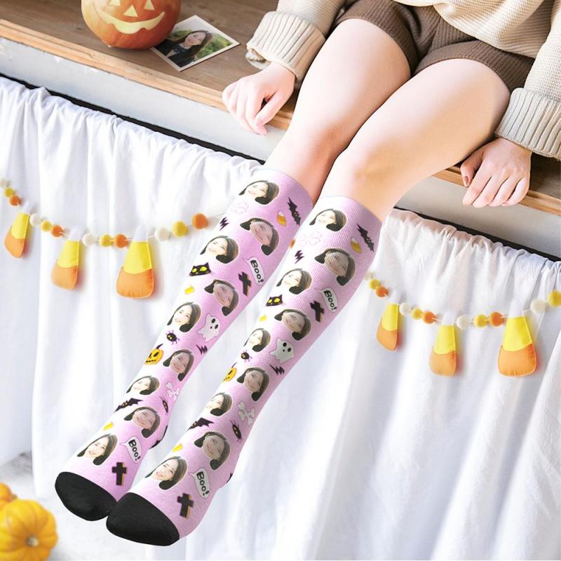 カスタムフェイスソックス-写真入り可能なオリジナルハイソックス靴下-カボチャ柄のハロウィンプレゼント カスタムフェイスソックス-写真入り可能なオリジナルハイソックス靴下-カボチャ柄のハロウィンプレゼント