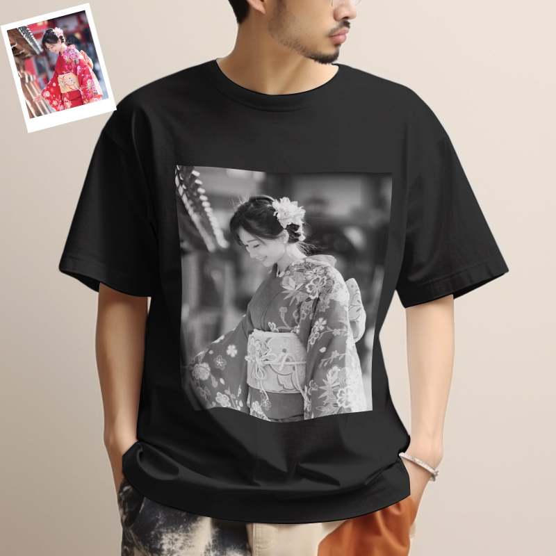 カスタム男女兼用フォトTシャツ - 写真入れ可能なおしゃれな写真T-SHIRTレトロなシャツプレゼント