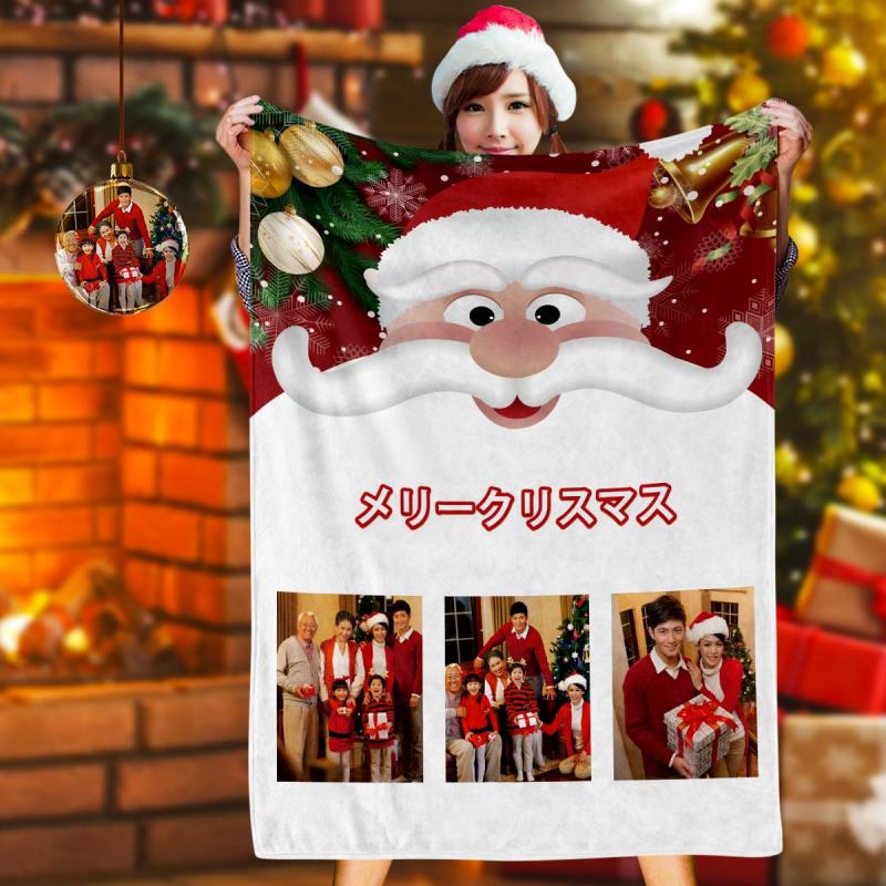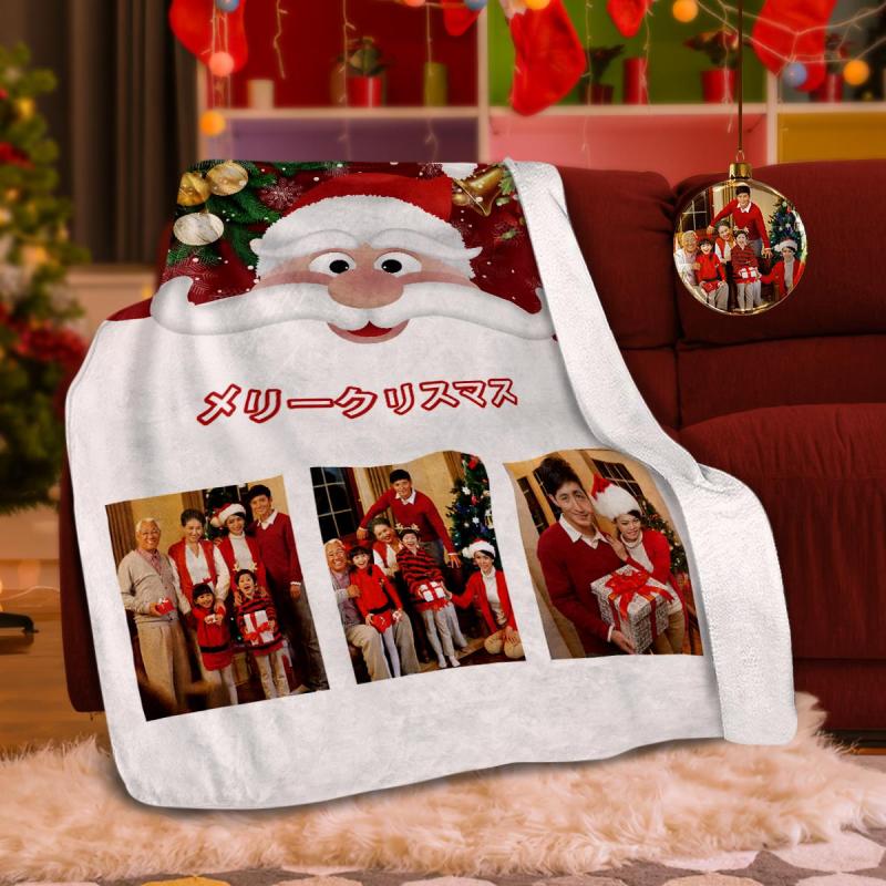 カスタムフォトブランケットギフト-写真3枚入り可能なクリスマスフリース毛布ギフト-サンタクロース柄