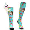 カスタム可愛い写真靴下-ニーハイフェイスソックスナマケモノ人形のピンクデザートの靴下