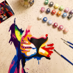 - Spread the paint cups with numbers on them.