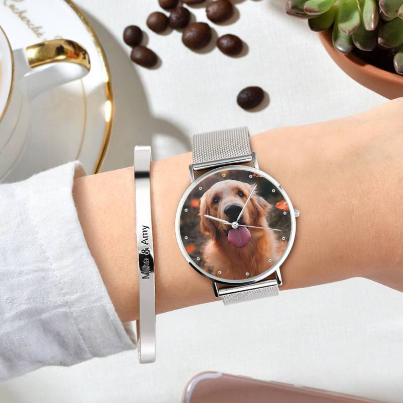 - ユニークで魅力的な自分の写真が描かれたパーソナライズされた時計