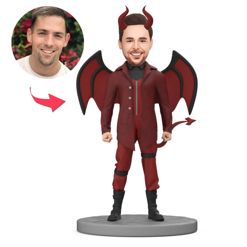 カスタムボブルヘッドハロウィン男性レッドデーモンカスタムボブルヘッド、彫刻文字付き